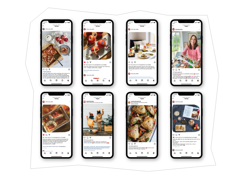 We have created an influencer campaign whose primary goal is to position the brand in Danish supermarkets. The campaign is based on recipes, which contain Kanzi® apples. We have integrated the influencers directly. The aim is to show their sincere excitement towards the crispy apples, and in that way create trustworthy communication.